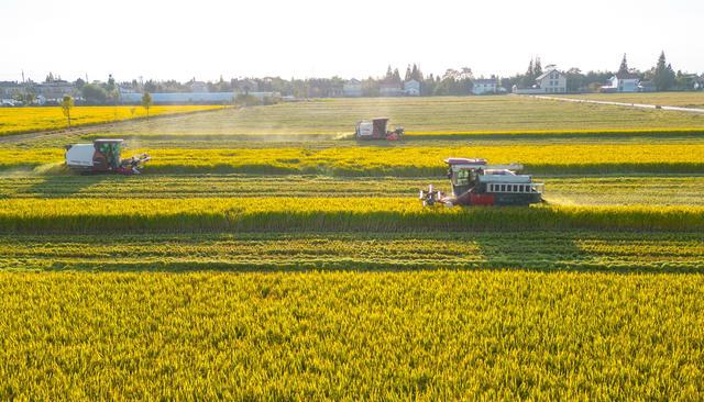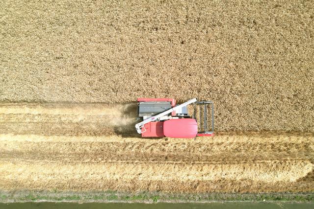 2023年10月29日,江苏省海安市孙庄街道营溪村农民驾驶收割机收割水稻(无人机照片)。新华社发(翟慧勇摄) 经过多方努力,目前丘陵山区“无机可用”的情况已得到改观,短板农机装备取得突破。如320马力无级变速拖拉机、山地玉米播种机等陆续量产,大型大马力农机、丘陵山区小型农机等机具面世,初步实现“有好农机用”。