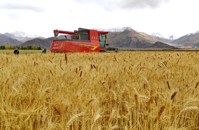 工作人员驾驶农业机械在西藏拉萨市林周县曲果强村的高标准农田里收获小麦(2023年10月12日摄)。新华社记者 张汝锋 摄 统计数据显示,我国农业机械化应用水平,在不同产业、不同区域之间很不平衡。丘陵山区省份的农作物耕种收综合机械化率仅为53.5%,比全国平均水平低约20个百分点。