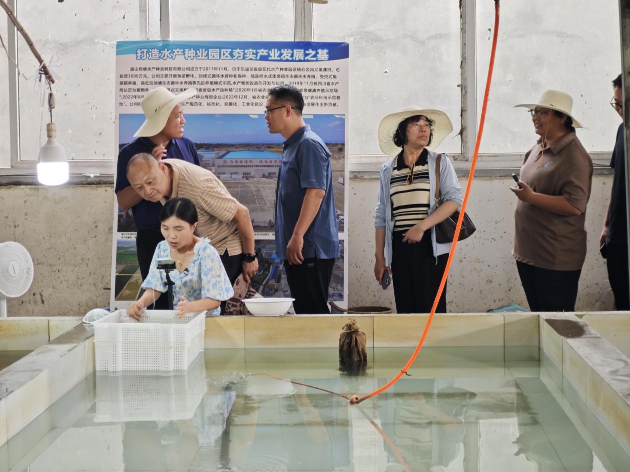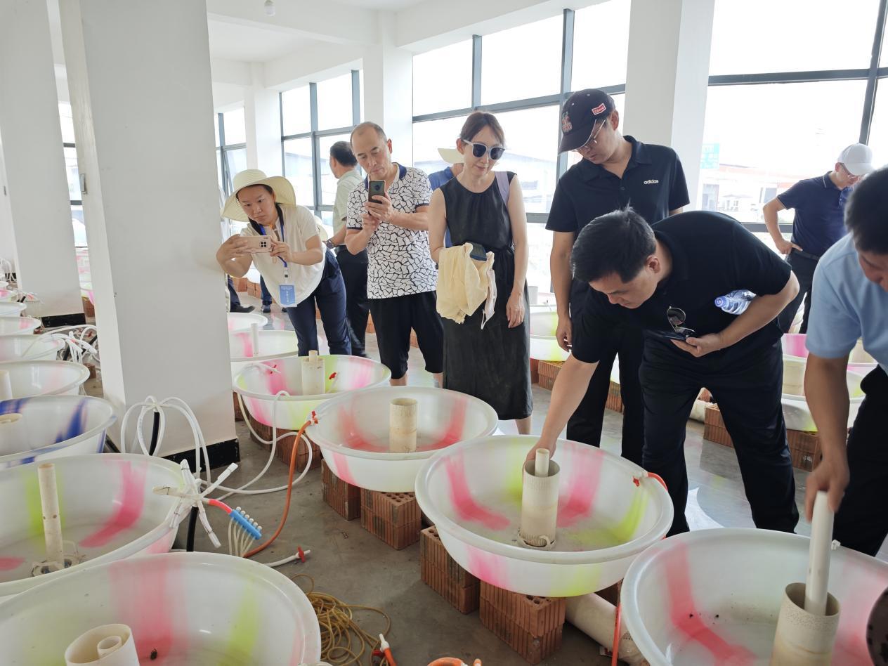 嘉宾在东坡区水产种苗繁育企业参观繁育设备。