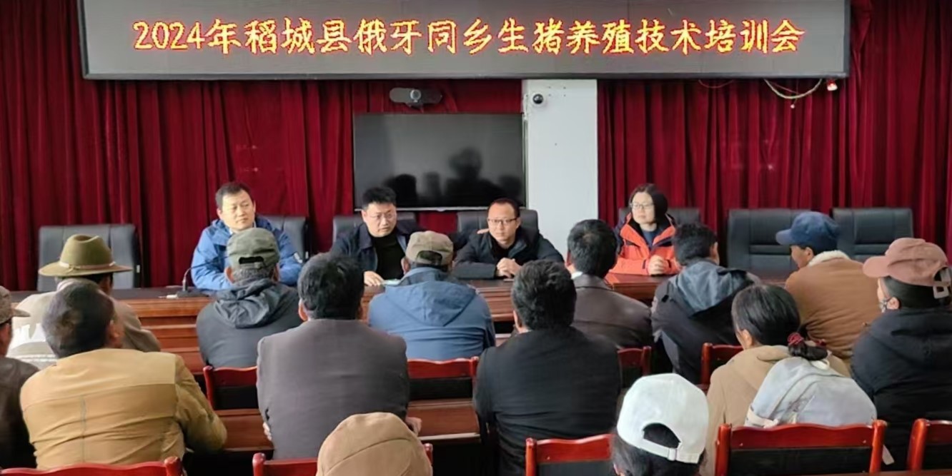 一周多前,他率领的高原畜禽高效生产与利用创新团队,深入稻城县,开展了“科技下乡万里行”活动。专家团队为乡亲们举办了集中技术培训,围绕藏猪安全养殖和高效利用技术、主要消毒药应用等关键领域,为前来参加培训的基层技术人员和养殖大户带来了深入浅出的讲解。