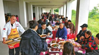 当天,20桌坝坝宴在楼栋架空层场地上热闹摆开,村民们欢聚一堂,共庆乔迁之喜。