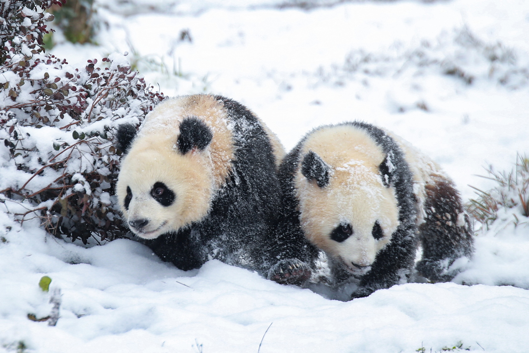 下雪后,碧峰峡景区的大熊猫染上了“糖霜”(黄刚摄)