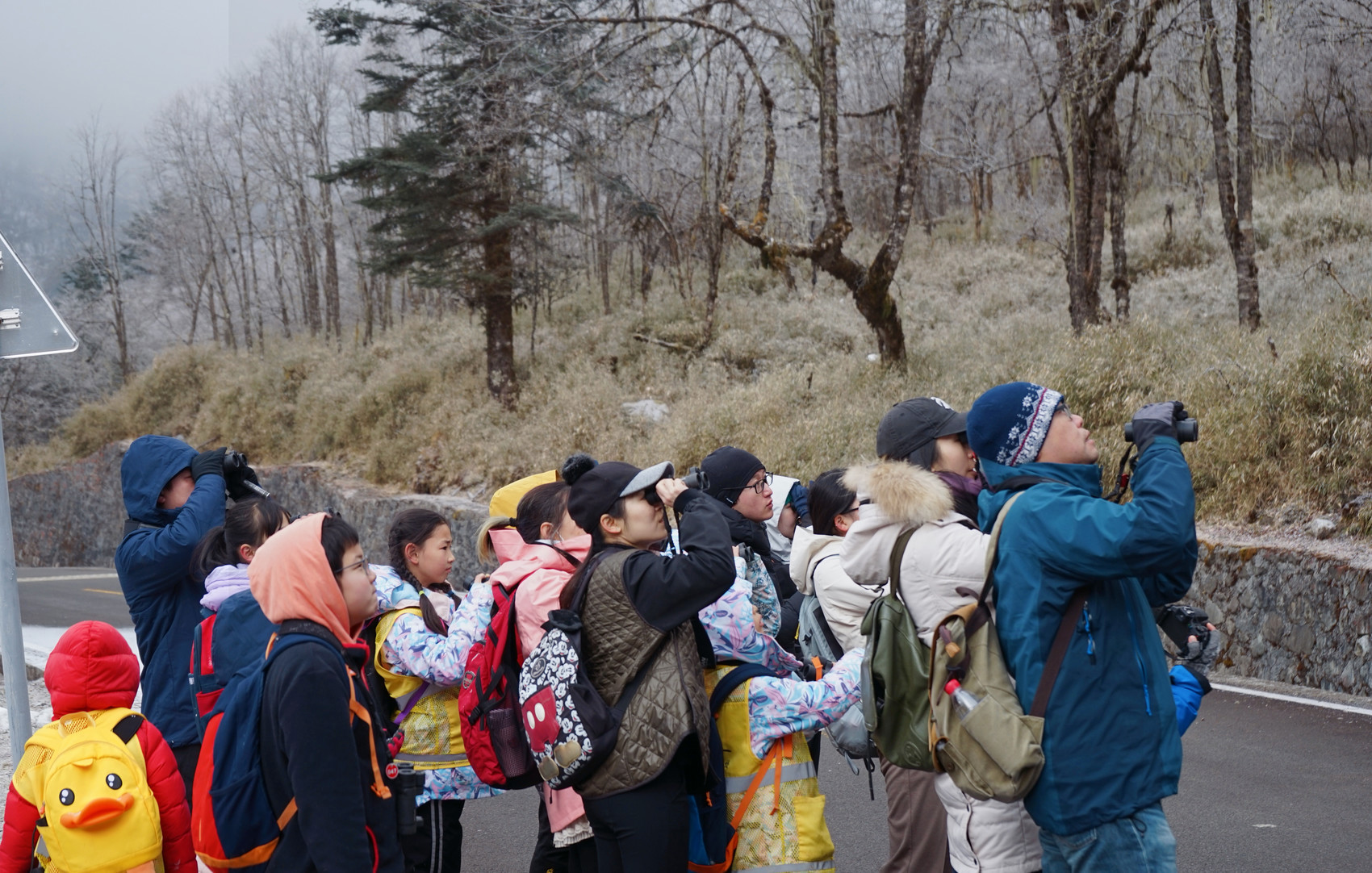 亲子群体在二郎山喇叭河景区自然研学活动中观鸟(景区供图)