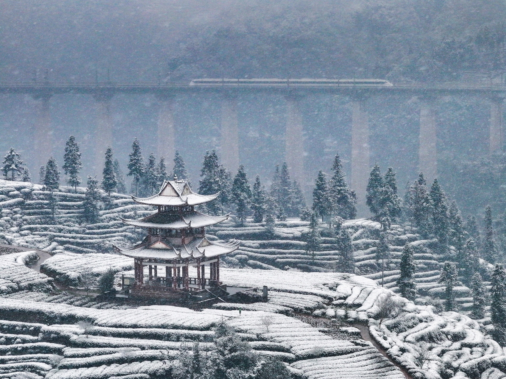 在雨城区和荥经县,各种康养产业链成“一条龙”服务。西康文旅酒店管理公司负责人吴登俊介绍,看完碧峰峡萌趣的雪中动物,还能前往雨城区的周公山温泉酒店集群泡温泉。若你对传统文化感兴趣,可以在蒙顶山下的茶宿住一晚,看茶山被皑皑白雪覆盖,瑞雪兆丰年在此处具象化。若图一份静谧,在荥经的大熊猫国际森林探秘学校游玩后,可前往水墨花溪谷体验森林康养温泉。