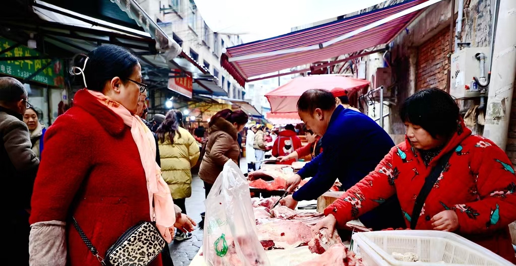 12月19日,早上8点,乐至县各大农贸市场摊位前人头攒动,顾客络绎不绝。新鲜的牛羊肉悬挂在摊位上,摊主们手法娴熟地切割着新鲜的羊肉,与顾客之间的讨价还价声此起彼伏。市民唐光琼高兴地展示刚抢购的羊肉:“冬至吃羊肉是家里的传统,今天特意来买些新鲜羊肉,准备给家人煮一锅热腾腾的羊肉汤。”