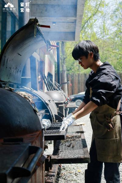 植悟公司的双溪烤房就在这个岛上,有三个烤炉,销售的主要是特色美式烤肉。马先友作为组长,最初带领3个同学到这里负责打理这个经营点。他们请来师傅教了一天的基础知识,比如如何腌肉、烤肉时温度要精准控制在100—130℃,要烤8—12个小时,如此才能烤出外焦里嫩、美味可口的佳肴。
