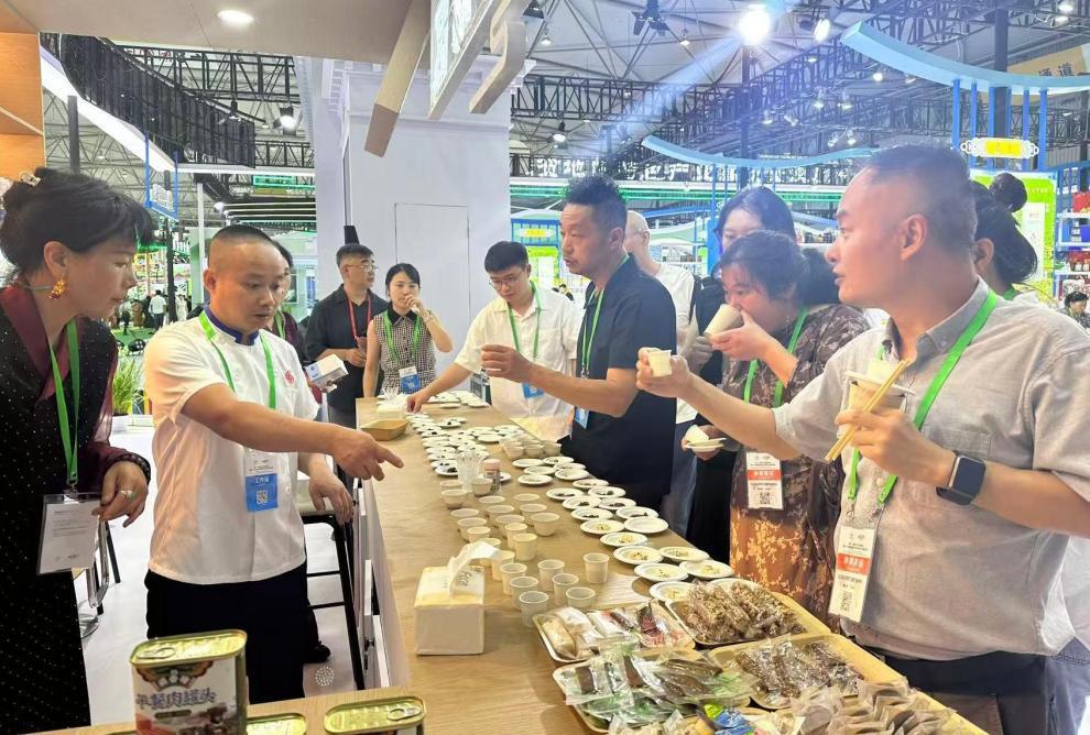 “风干牦牛肉,口感特别好,来自雪域高原的有机产品就是不一样!”在理塘县展区,来自广州的客商杨先生在品鉴理塘县高城鹏飞牦牛肉食品开发公司的产品时不断点赞。“此次农博会我们带来了16个系列30多个不同口味的牦牛肉产品,欢迎大家选购。”现场展销人员介绍。