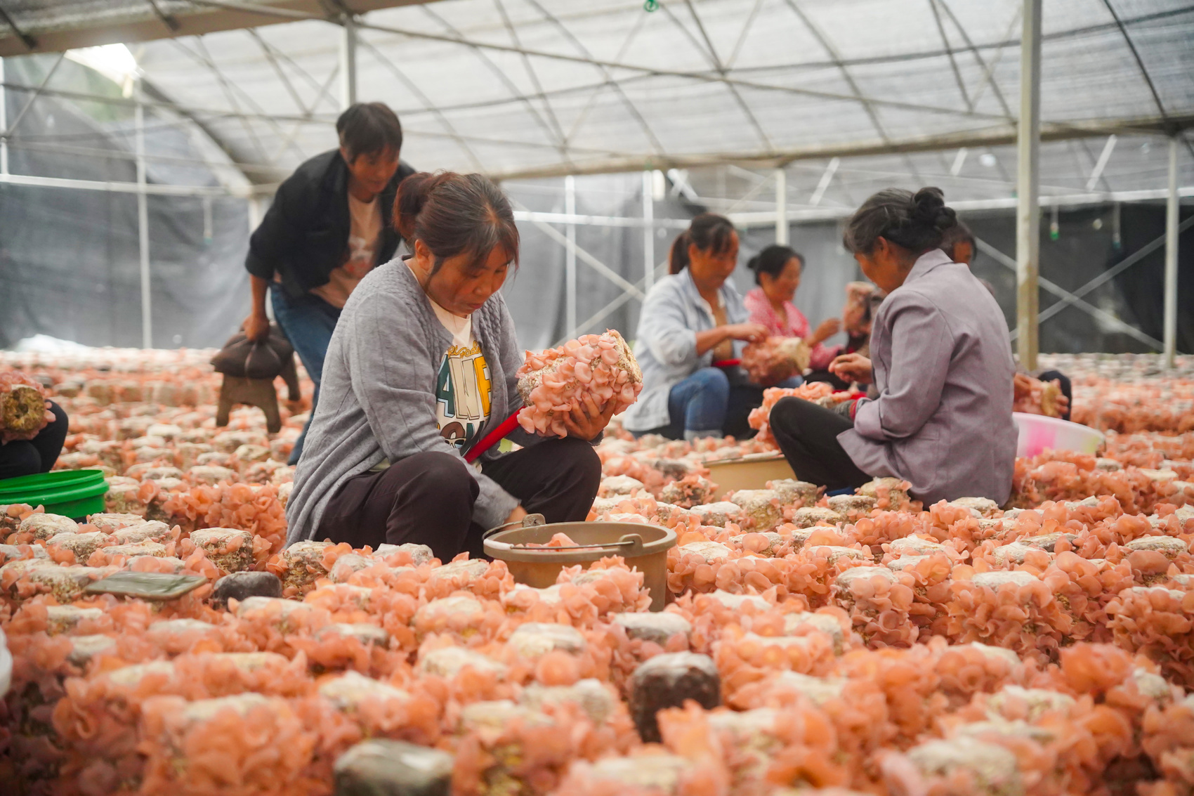 收获季,工人在采收粉木耳,周边百姓在家门口实现就业。受访者供图