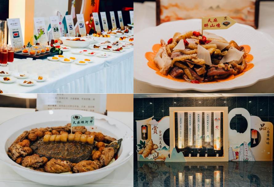 2025年10月底,在第八届世界川菜大会召开前夕,金口河区成功举办了以“世界川菜·天麻飘香”为主题的第三届“天麻宴”系列活动。天麻脆笋、天麻琉璃骨、天麻醉山鸡、腊肉天麻土豆酥、天麻酥鱼、天麻乳鸽汤等20道“天麻宴”系列精品菜肴惊艳亮相,赢得与会嘉宾与游客的交口称赞。
